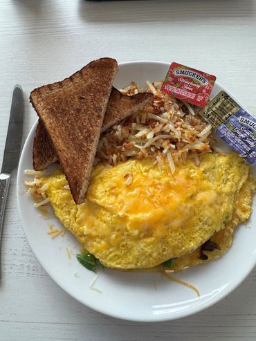SERVED WITH YOUR CHOICE OF OF TOAST & EITHER HASHBROWN OR HOME FRIES